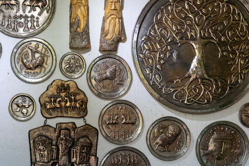 Craftsmen here do a lot of metal work. Copper plates, brass and bronze art available at many of the local shops. Interesting though, they also make momentos out of the spent ammunition from the war. Note the picture with the stamped shell casings.